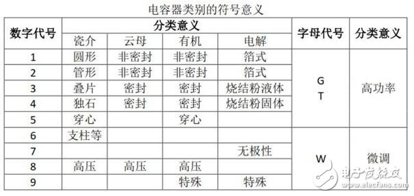 電容器類別由數(shù)字或字母表示,所表示的含義如下圖所示。