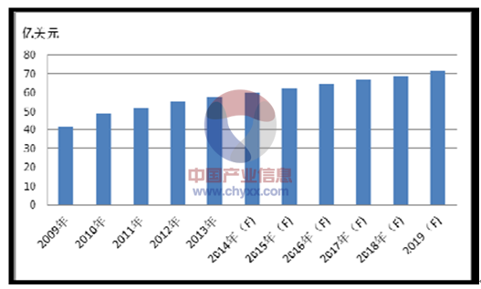 全球生產(chǎn)鋁電解電容器的主要國家及地區(qū)是日本、中國臺灣地區(qū)、韓國和中國大陸,由于其價格便宜、品種齊全而被大量使用,但普通的鋁電解電容器不適合在高頻(25kHz 以上)和低溫環(huán)境中應用。目前鋁電解電容器約占整個電容器市場規(guī)模的32%,其下游市場,尤其是在變頻器、新能源、軌道交通、變頻家電等領(lǐng)域未來需求增長較快。根據(jù)《2013 年中國陶瓷電容器市場競爭研究報告》,2013 年全球鋁電解電容器市場銷售額達到了57.6 億美元,預計2014 年將達到60 億美元,其中,中國鋁電解電容器市場規(guī)模2013 年已達到239.9 億元,預計2014 年將達到255.8 億元。